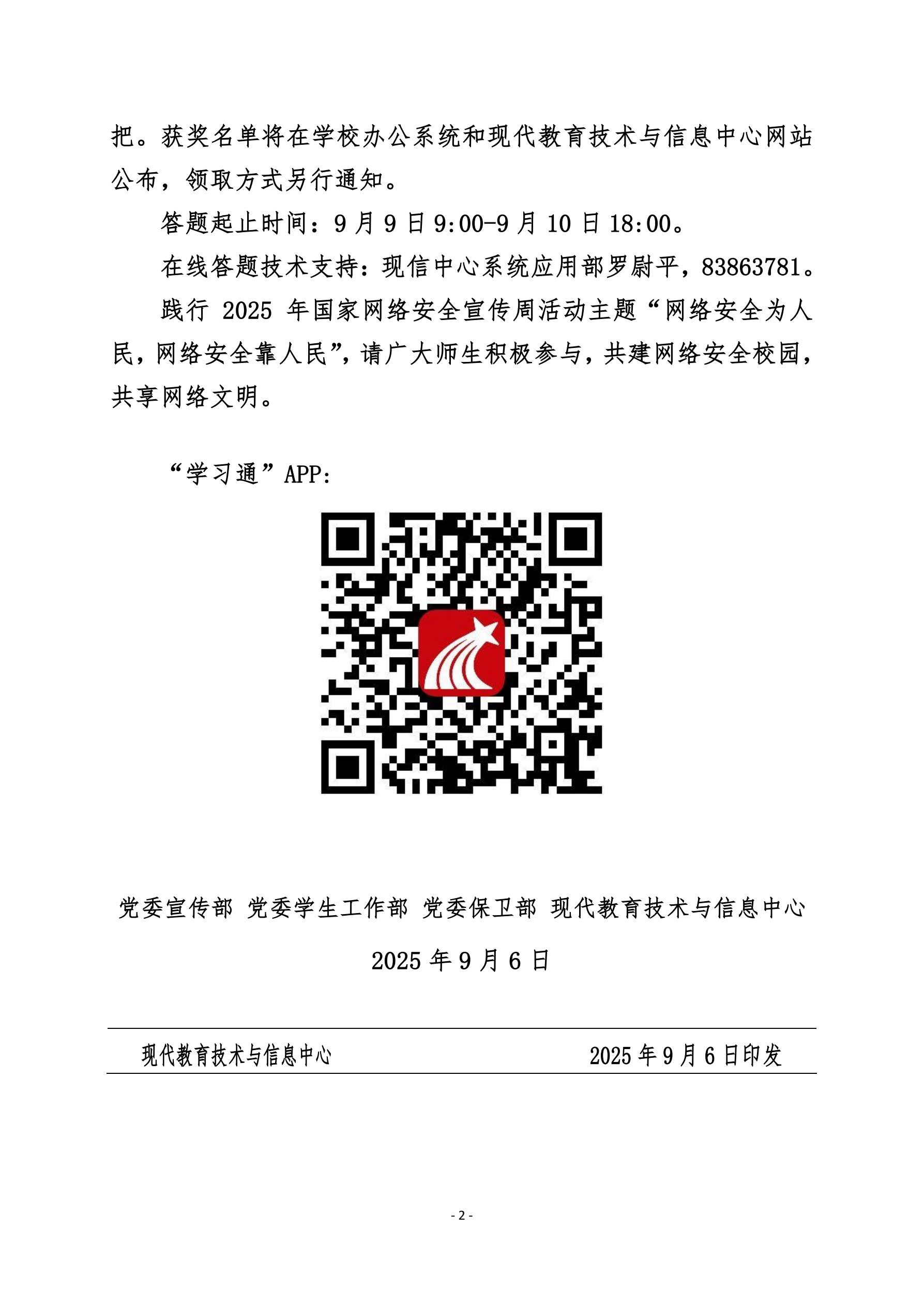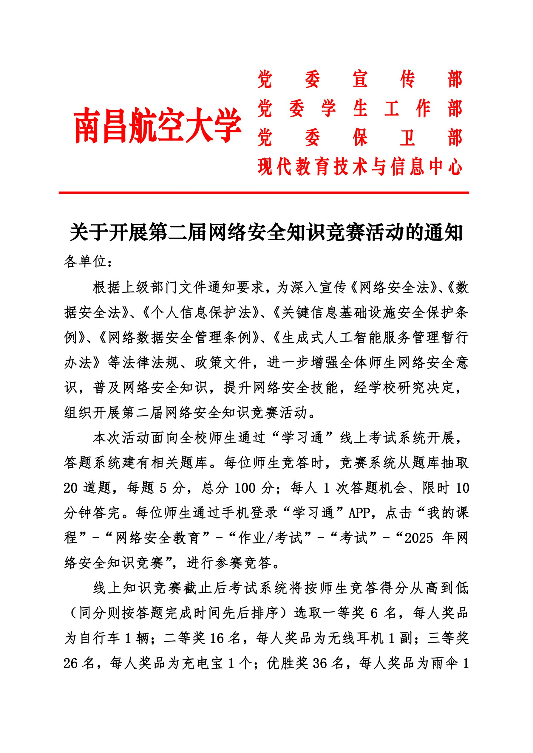 关于开展第二届网络安全知识竞赛活动的通知