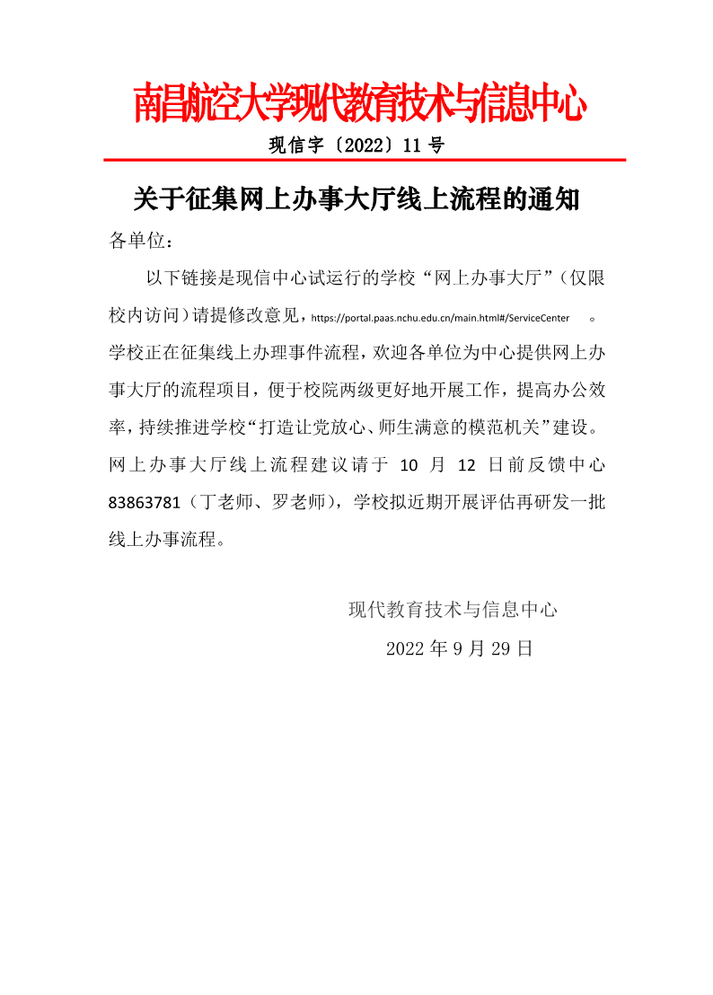 关于征集网上办事大厅线上流程的通知