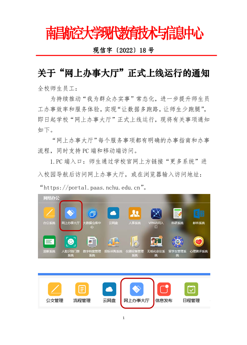 关于“网上办事大厅”正式上线运行的通知